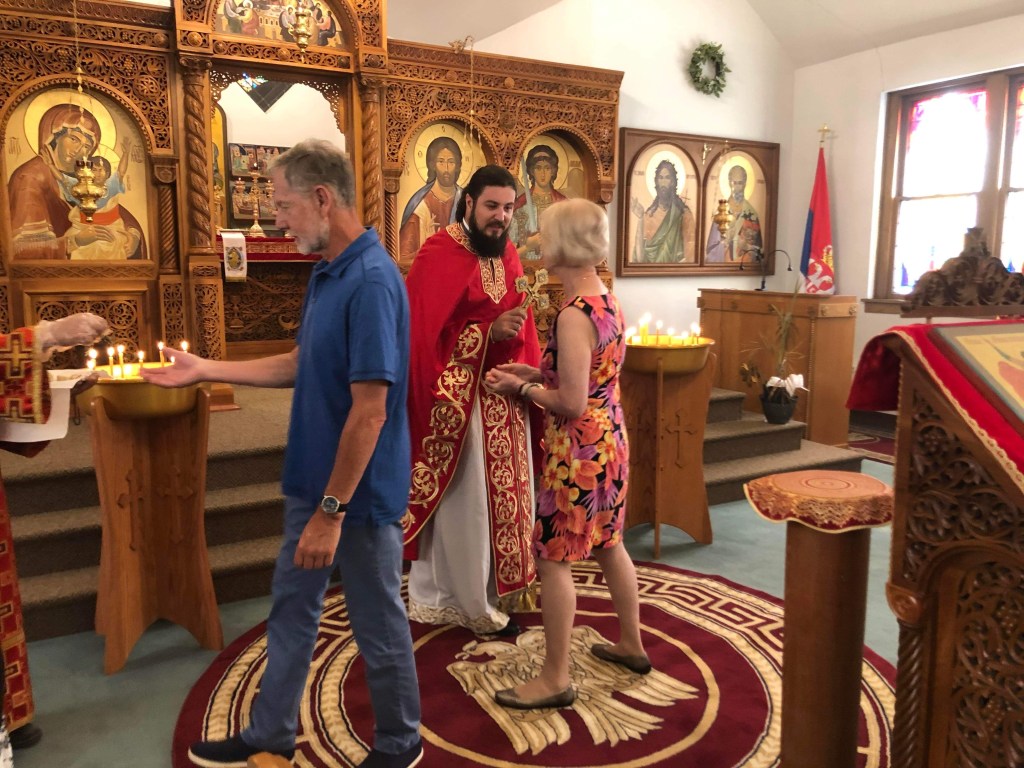 Following Divine Liturgy today, an agape meal was provided by our parish board members in the church hall. Parishioners gathered to enjoy the wonderful meal at out annual picnic. Despite the warm weather, Father Nektarije danced the kolo and fun was had by all! Thank you to everyone for coming an a BIG thank you to all who helped!