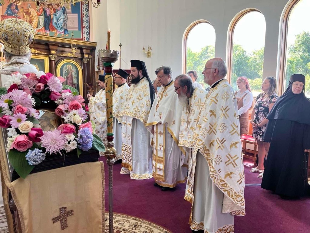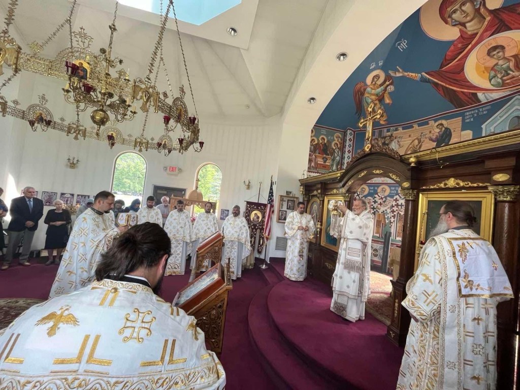 Parishioners from St. George joined Father Nektarije at Monastery New Marcha in Richfield, Ohio for a Slava celebration for the feast of the Synaxis of the Archangel Gabriel, patron saint of the monastery church. Area clergy and faithful were led in the celebration of the Divine Liturgy by His Grace, Bishop Irinej, of the Serbian Orthodox Diocese of Eastern America. Following liturgy, Sister Anastasia prepared a wonderful agape meal for His Grace, the clergy and guests. Beautiful weather accompanied the glorious afternoon at the monastery.