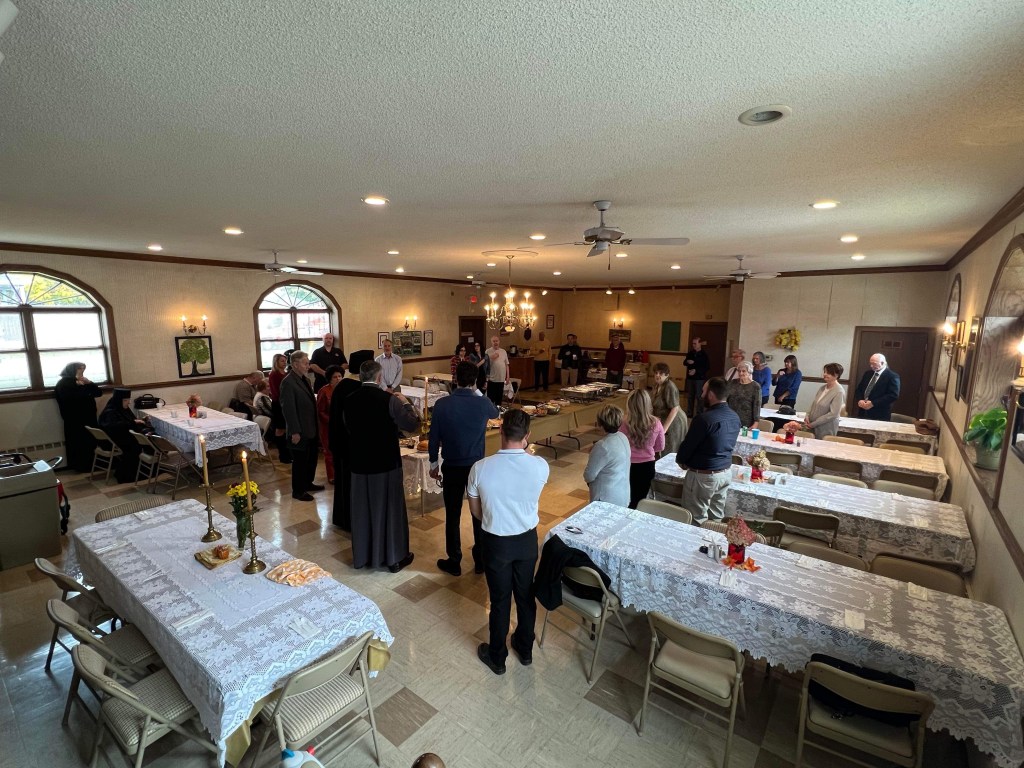 The Circle of Serbian Sisters of Lorain, Ohio celebrated Sveta Petka Slava today. The beautiful fall morning began with Divine Liturgy. The sisters then joined together as Father Nektarije blessed the kolach for in honor of the saint who blesses us with many years to come, and the wheat in memory of our ancestors. Kelli D’Agnese was honored as Kuma of the celebration with her daughter Haili. Eva Zunich accepted the corner of the bread as next years Kuma. The circle of sisters at St. George have been an active organization since 1927. Thank you to all who were with us and shared with us today.