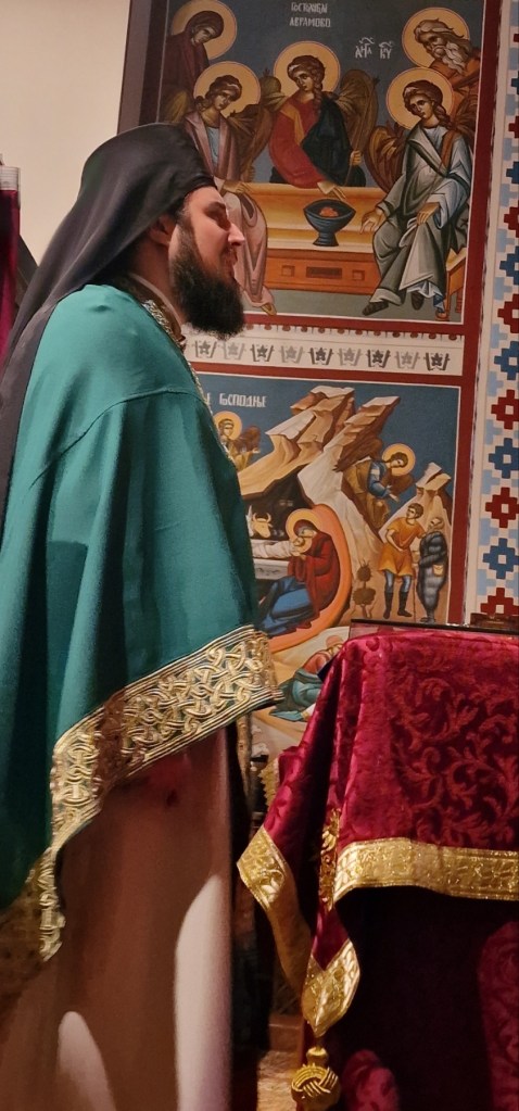 With the blessings of His Grace Bishop Irinej, visiting spiritual father, the Venerable Protosyngelos Sava (Vukajlovic) from the Metropolitanate of Montenegro and the Littoral invited Syngelos Nektarije (Tesnovic) of Lorain, Ohio and Deacon Milan Damljanovic of Cleveland, Ohio to celebrate the Holy Liturgy and thereby mark the dual feast and usher in the New Year with prayer and thanksgiving.