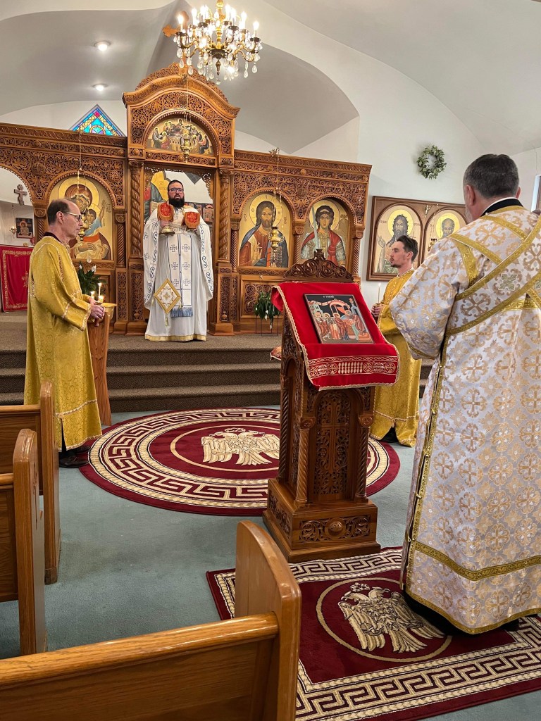 On Meatfare Sunday, the parishioners of St. George welcomed Father Sava (Vukajlovic) from New March Monastery in Richfield, Ohio. Father Sava served holy liturgy today as Father Nektarije is visiting his family and new niece, Sofia, in Serbia. Thank you, Father Sava!