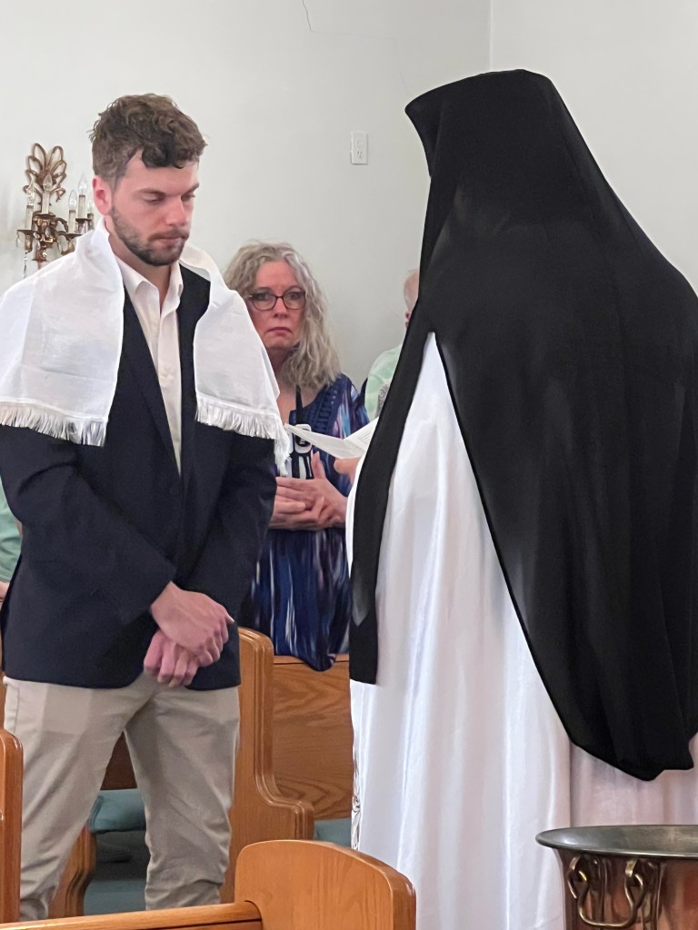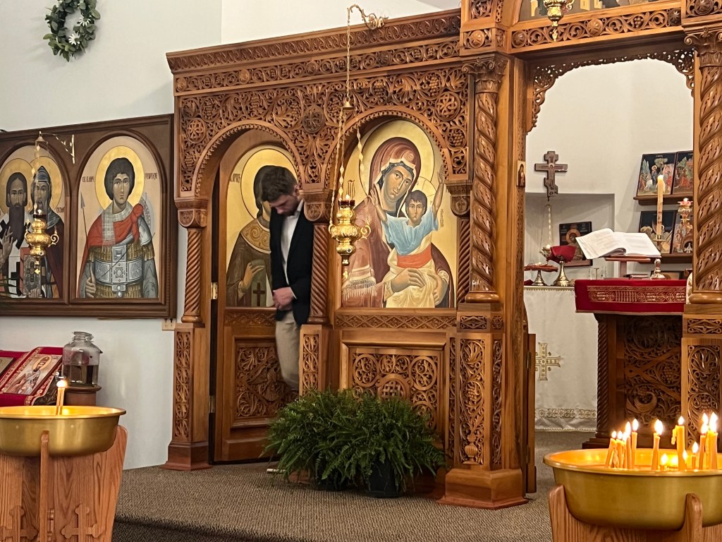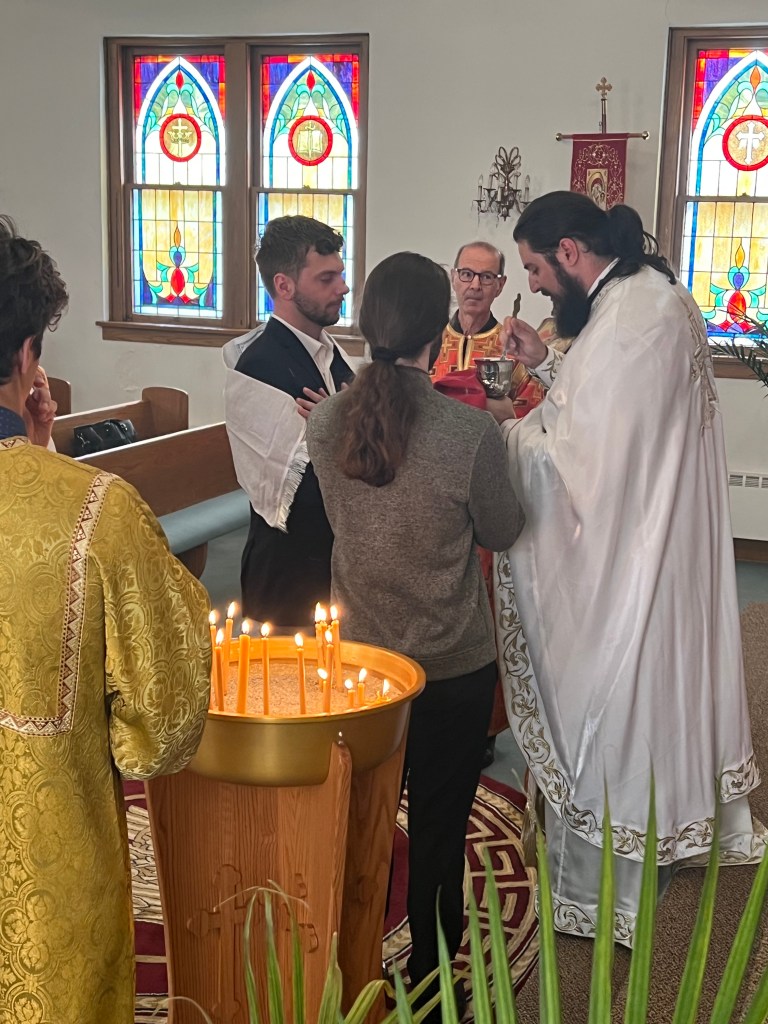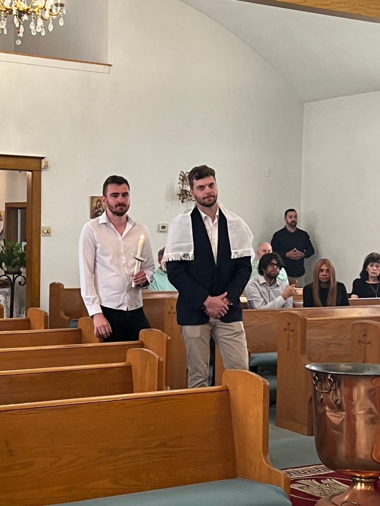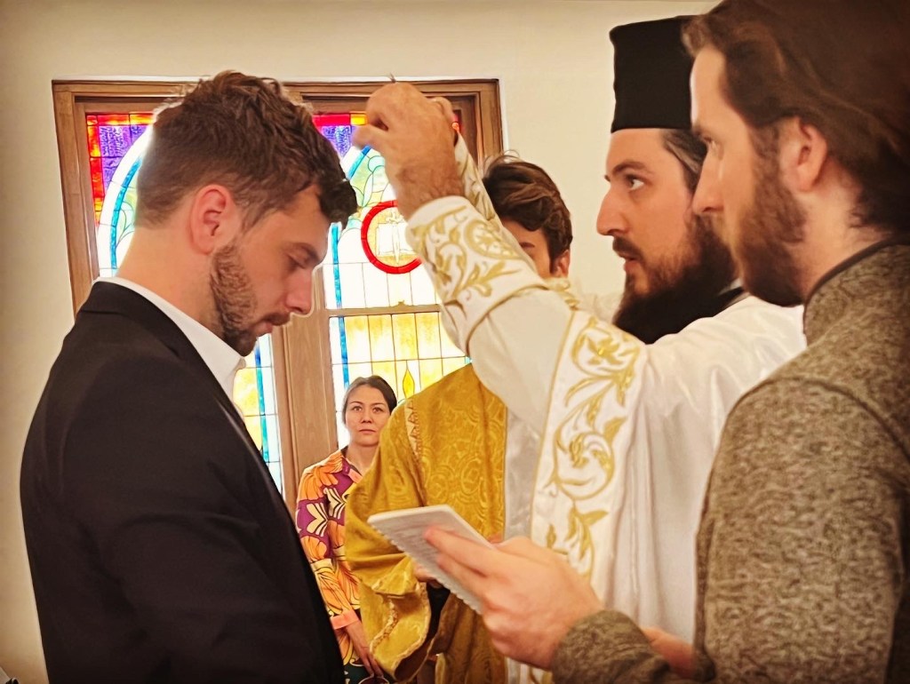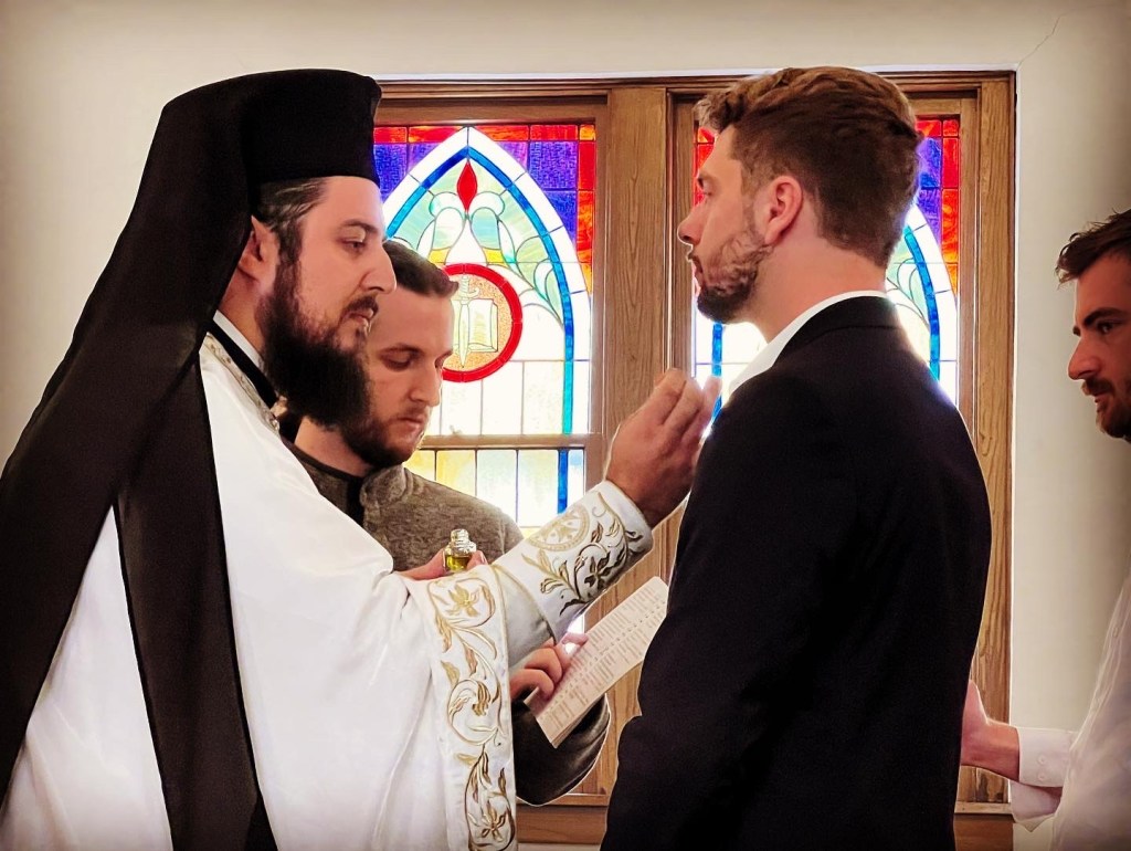 Today, during Divine Liturgy, amongst parishioners, family, and friends of Matthew Laverty, a celebration of joy was had on the occasion of his baptism into the Orthodox faith. Father Nektarije spoke on the importance of belonging to your faith. A fellowship lunch was enjoyed in the church hall. Congratulations to Matthew and his Kum, Stefan Nikolic! May God grant you many years!
